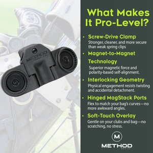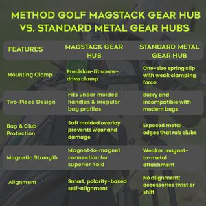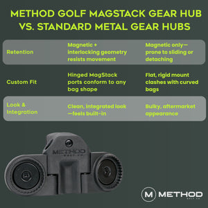 The Mag-Stack Gear Hub delivers a new level of organization, convenience, and performance to your game. It’s not just an accessory—it’s a custom upgrade to your golf bag. While traditional magnetic attachments offer speed, they often lack stability—leading to unwanted sliding or accidental detachment. Our magnet-to-magnet locking system pairs the ease of a self-aligning magnetic connection with enhanced holding power, keeping your gear securely in place until you're ready to use it.
