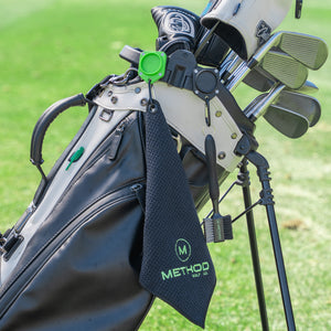 Built for versatility, the towel’s dual-layer construction includes a waterproof membrane that separates a high-performance waffle weave exterior from a super-absorbent microfiber interior. The outer layer scrubs away dirt and grime from club grooves and golf balls, while the interior stays damp longer for deep cleaning when you need it.